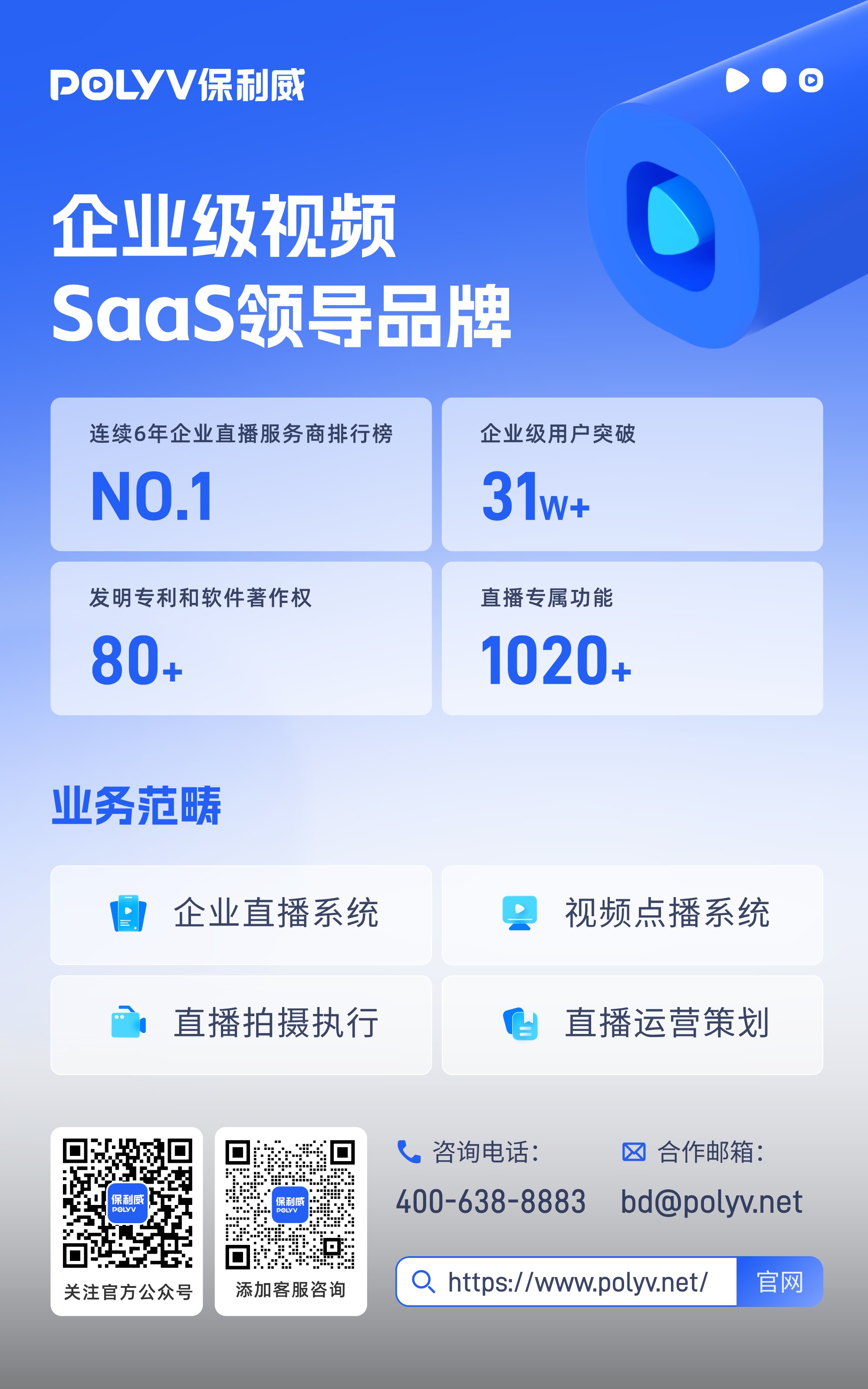 保利威“視頻云+AI”解決方案在教培、高教、職教與企培四大核心場景中,突破教育行業個性化、高質量和大規模的“不可能三角”。目前,保利威已服務31萬+企業,標桿客戶涵蓋建設銀行、南方航空、國家電網等行業龍頭。