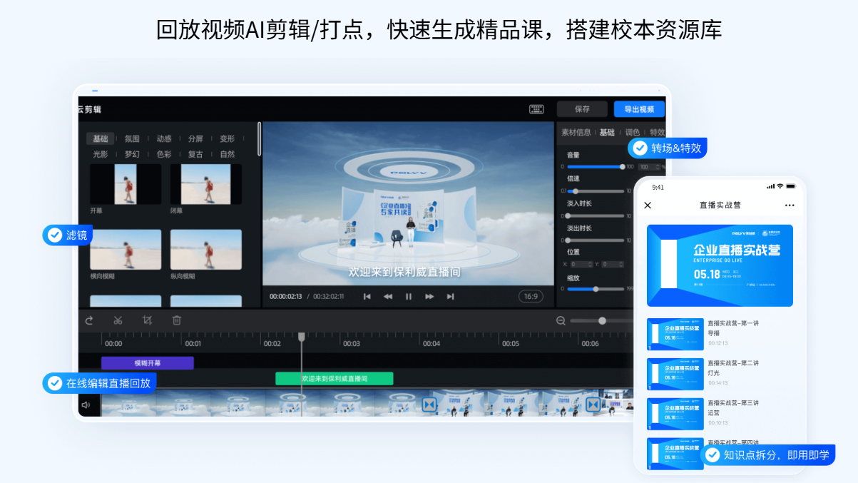 (3) 優質資源共享:通過保利威直播功能,邀請名師教師遠程授課,線下教師專注課堂管理與個性化指導。
