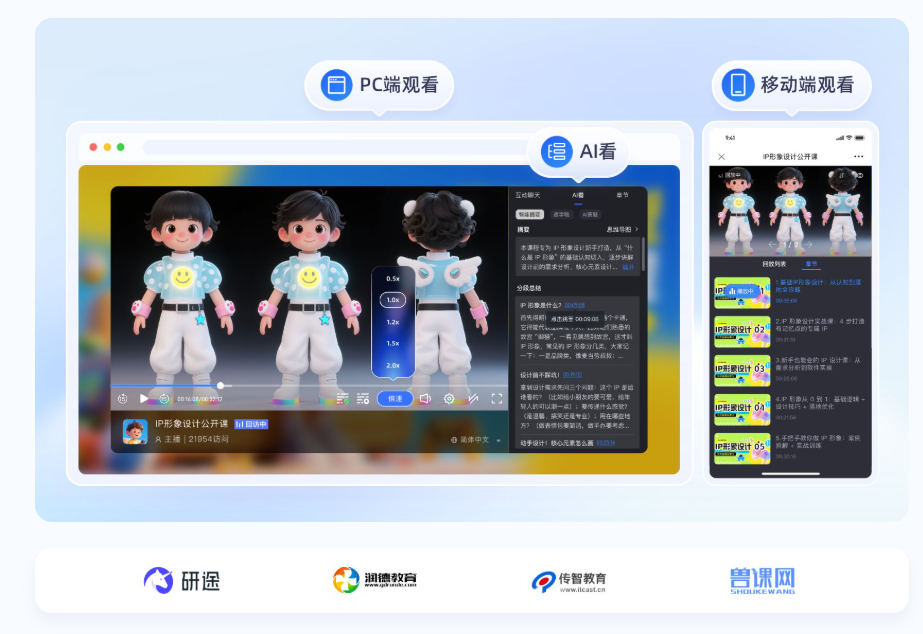 除了提升學習效率,學習體驗的連貫性與課程資產的安全性同樣不可或缺。學員常常需要在教室、宿舍、通勤路上切換場景,而跨終端(PC/App/小程序)的進度同步功能,讓他們能夠真正實現“斷點續學”,碎片化時間也可以被串聯成完整的學習流。