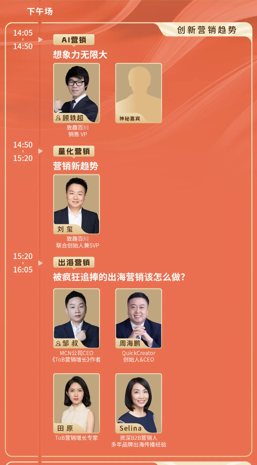 6月28號,致趣百川將在線舉辦《乘風破浪 · 2024 · B2B營銷加速中復盤峰會》,屆時將邀請業內專家和行業大咖,針對不同行業和不同層級的營銷人員,分享他們在上半年工作中遇到的種種挑戰,以及在解決問題、借力順勢和克服困難方面的寶貴經驗。