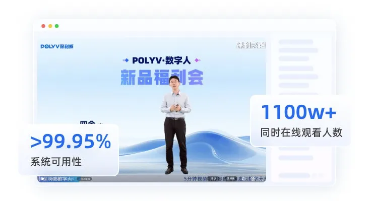 自2013年成立以來,保利威深耕企業直播領域,連續6年為央視春晚直播提供技術支持,已為超30萬企業提供穩定可靠的直播解決方案,涵蓋大會直播、活動直播等多類場景的服務支持。